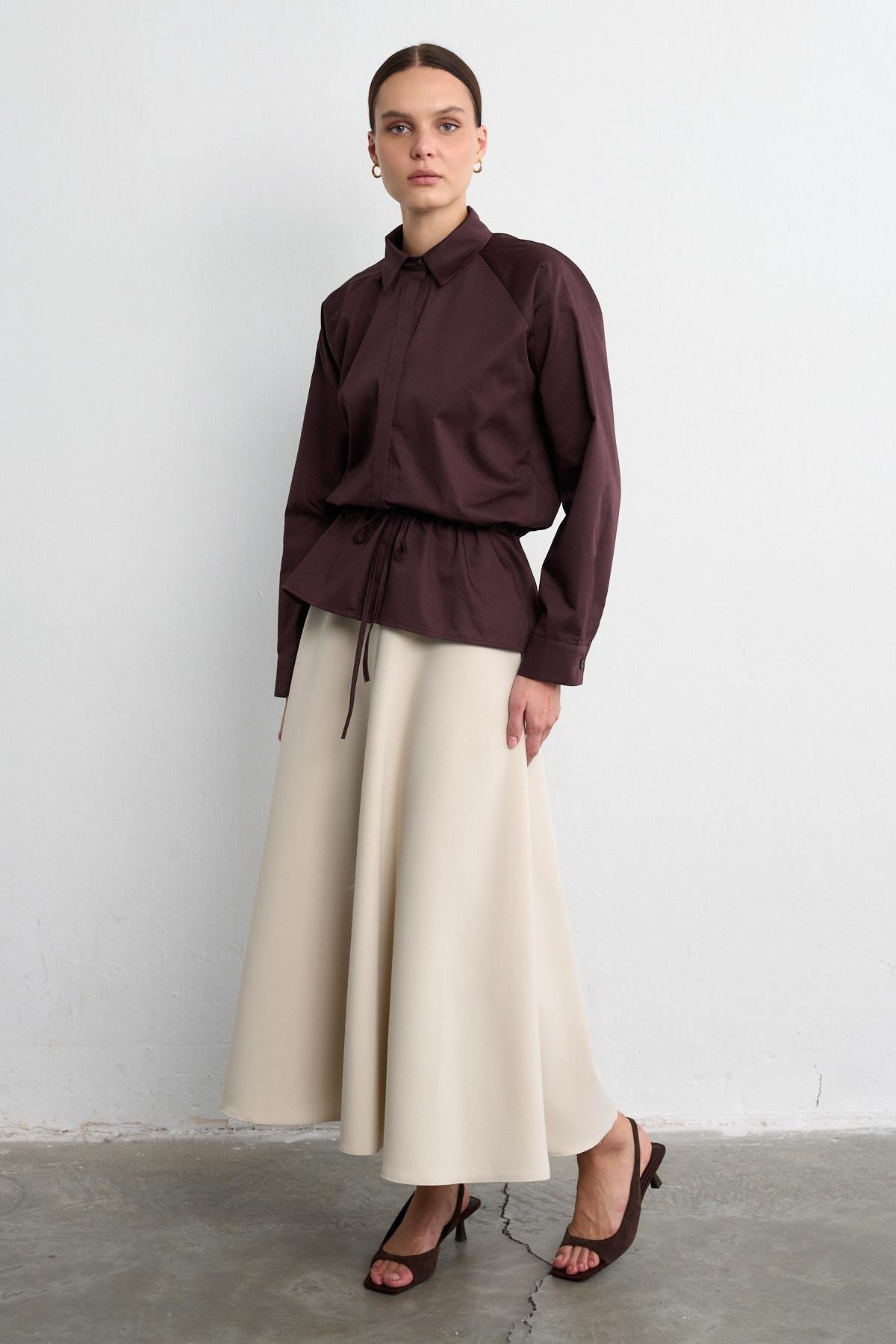 BELİ BAĞLAMALI GÖMLEK KIZIL KAHVE