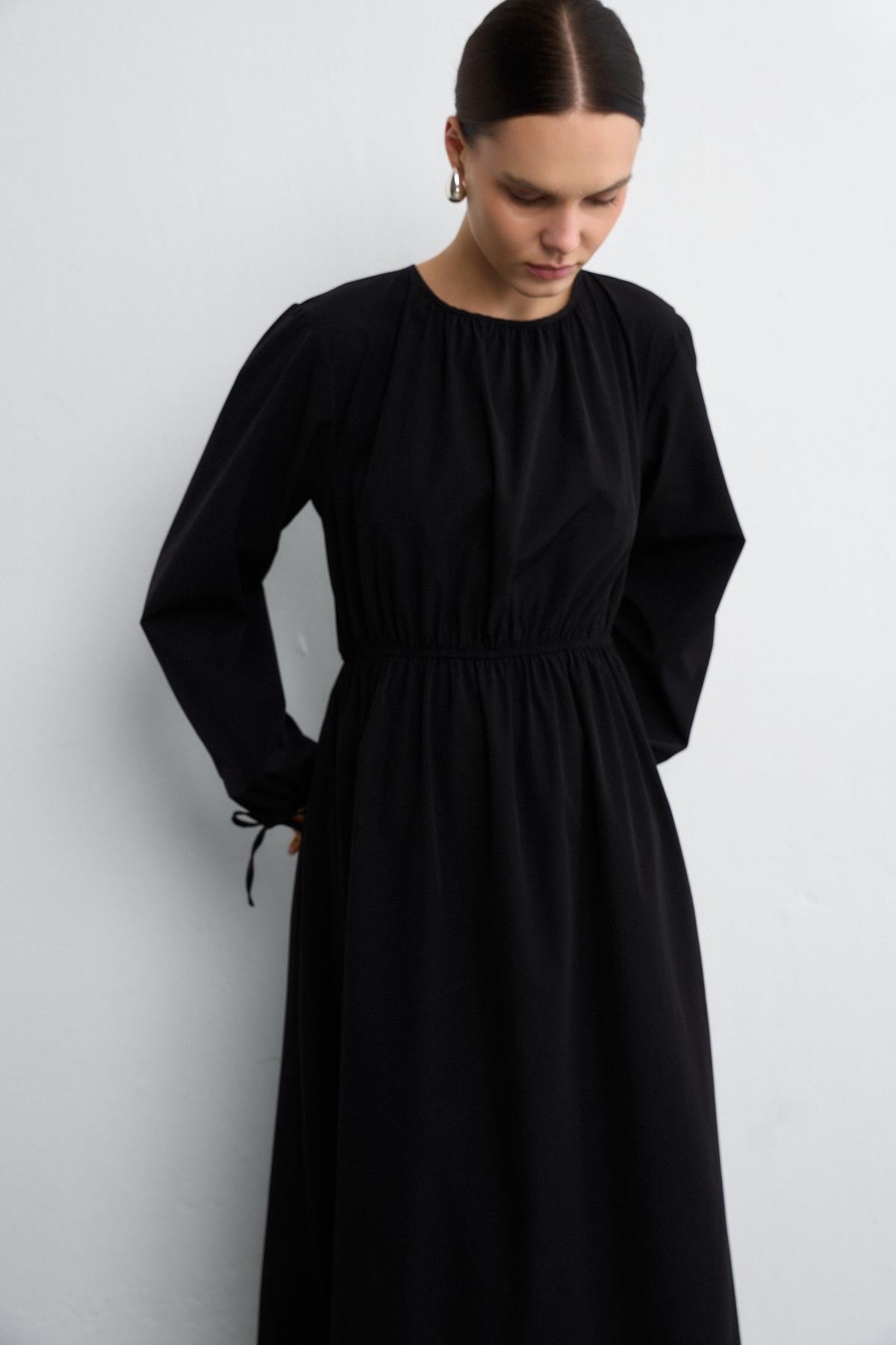 Beli büzgü detayıyla feminen bir siluet kazandıran bu elbise, hafif ve konforlu paraşüt kumaşın modern dokusuyla öne çıkıyor. Şık görünümlü tasarımı sayesinde hem günlük şehir stilinde hem de özel davetlerde rahatlıkla kullanılabilir. Minimal detayları, dinamik formu ve zamansız havasıyla gardırobunuzun vazgeçilmez parçalarından biri olacak.