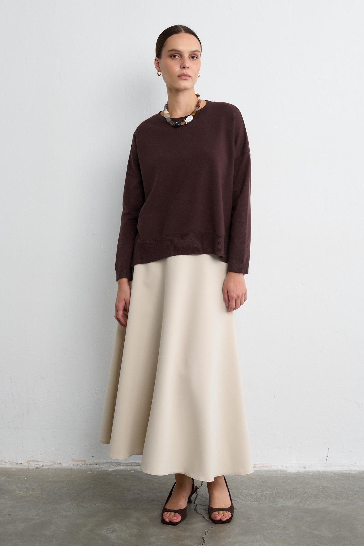DÖKÜMLÜ TRİKO BLUZ KAHVERENGİ