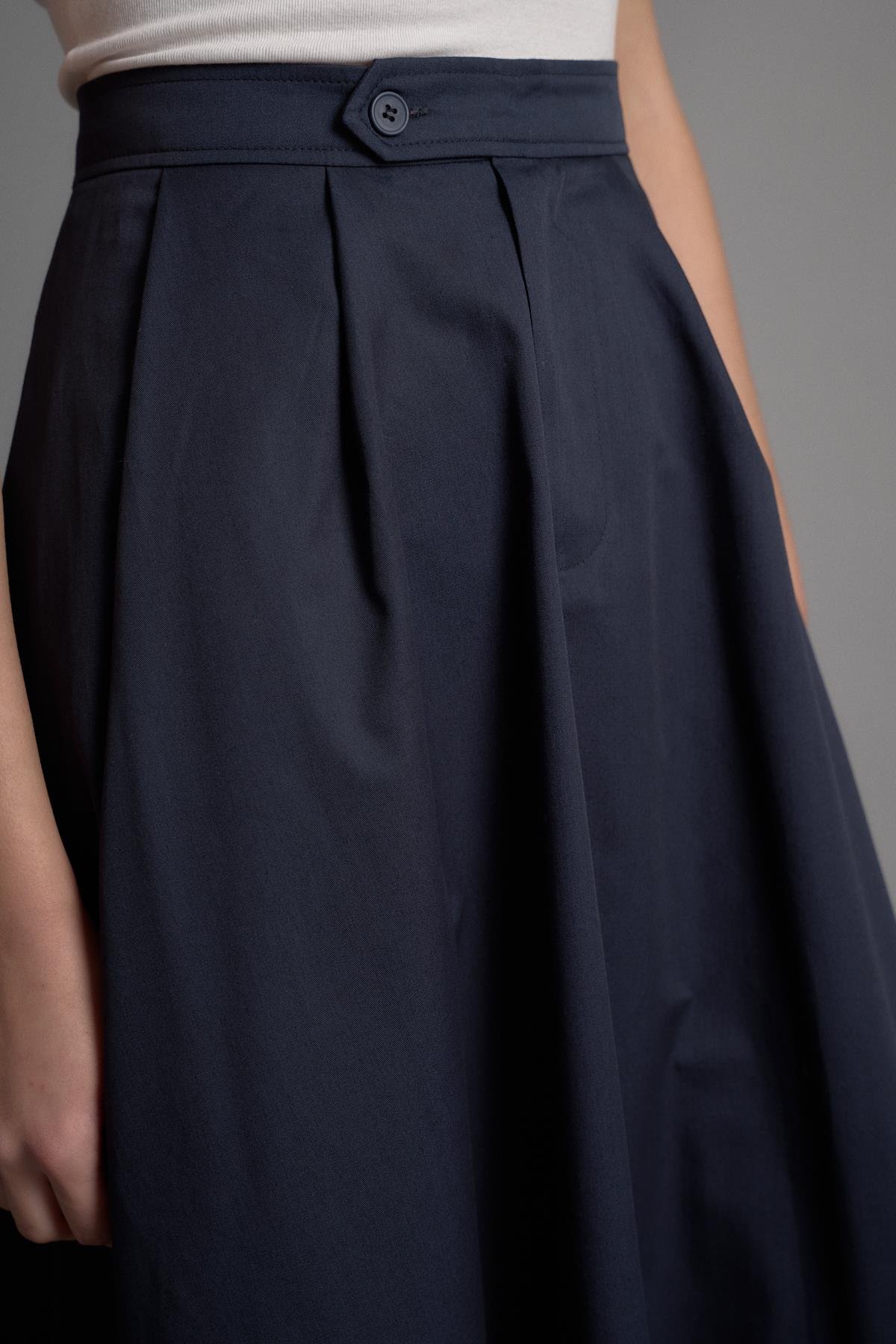 DUBLE DİKİŞLİ GABARDİN ETEK LACİVERT