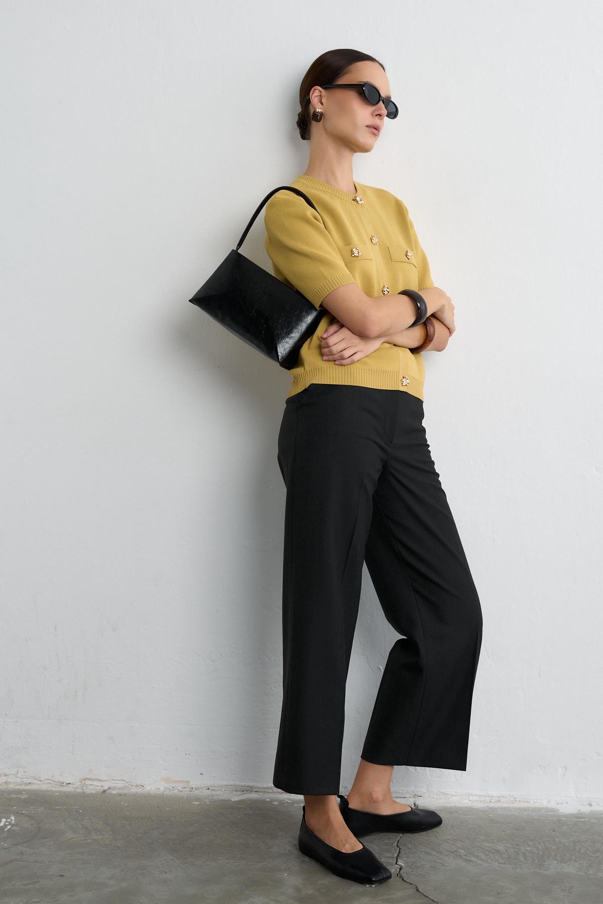 KISA KOLLU MERSERİZE TRİKO HIRKA HARDAL