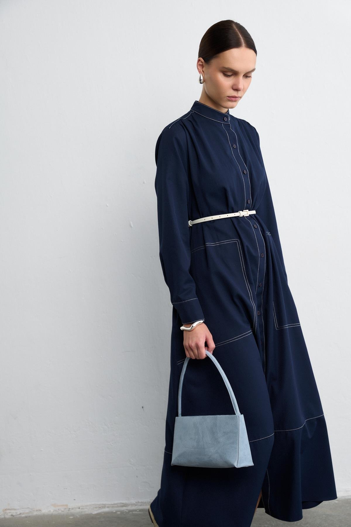 KONTRAST DİKİŞLİ ELBİSE LACİVERT