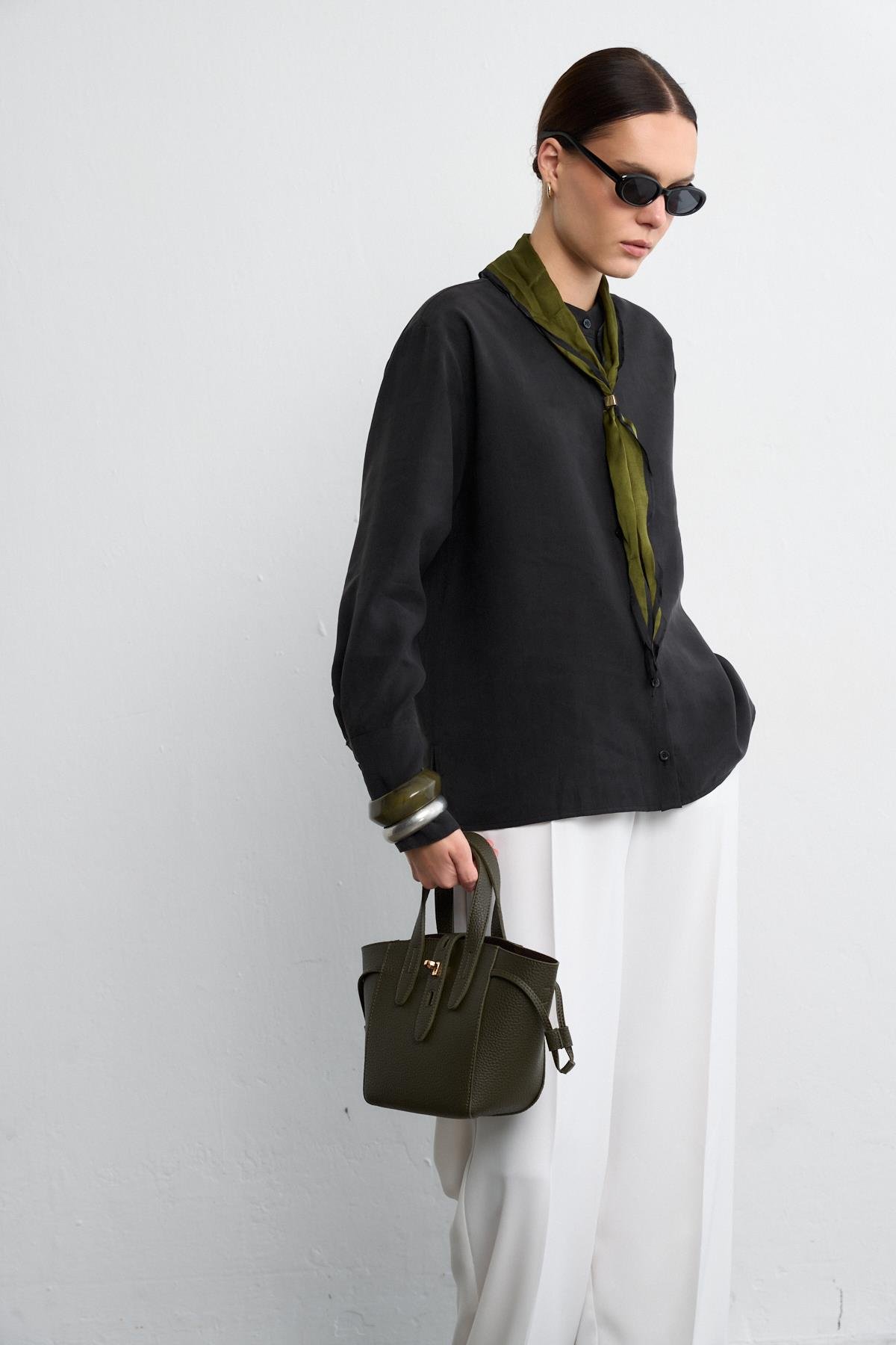MANDARİN YAKA CUPRO GÖMLEK FÜME MANDARİN YAKA CUPRO GÖMLEK SİYAH MANDARİN YAKA CUPRO GÖMLEK LACİVERT