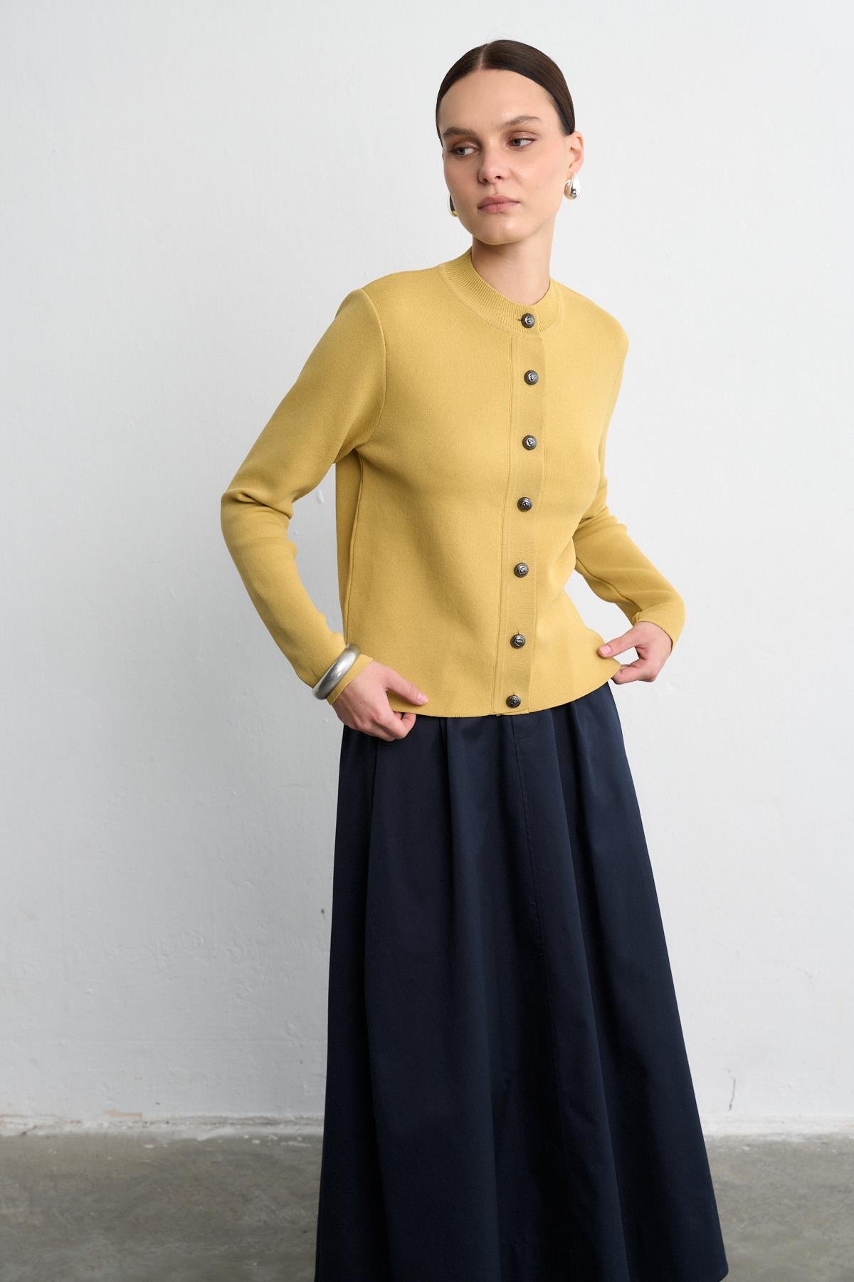 METAL DÜĞMELİ MERSERİZE TRİKO HIRKA HARDAL