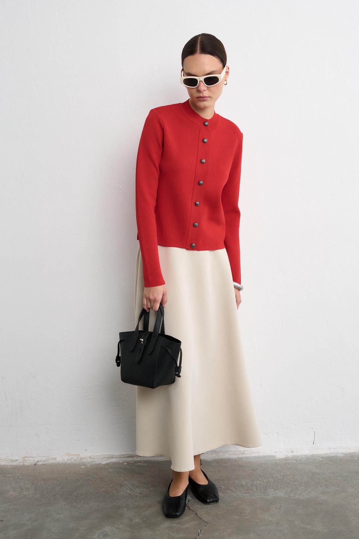 METAL DÜĞMELİ MERSERİZE TRİKO HIRKA KIRMIZI