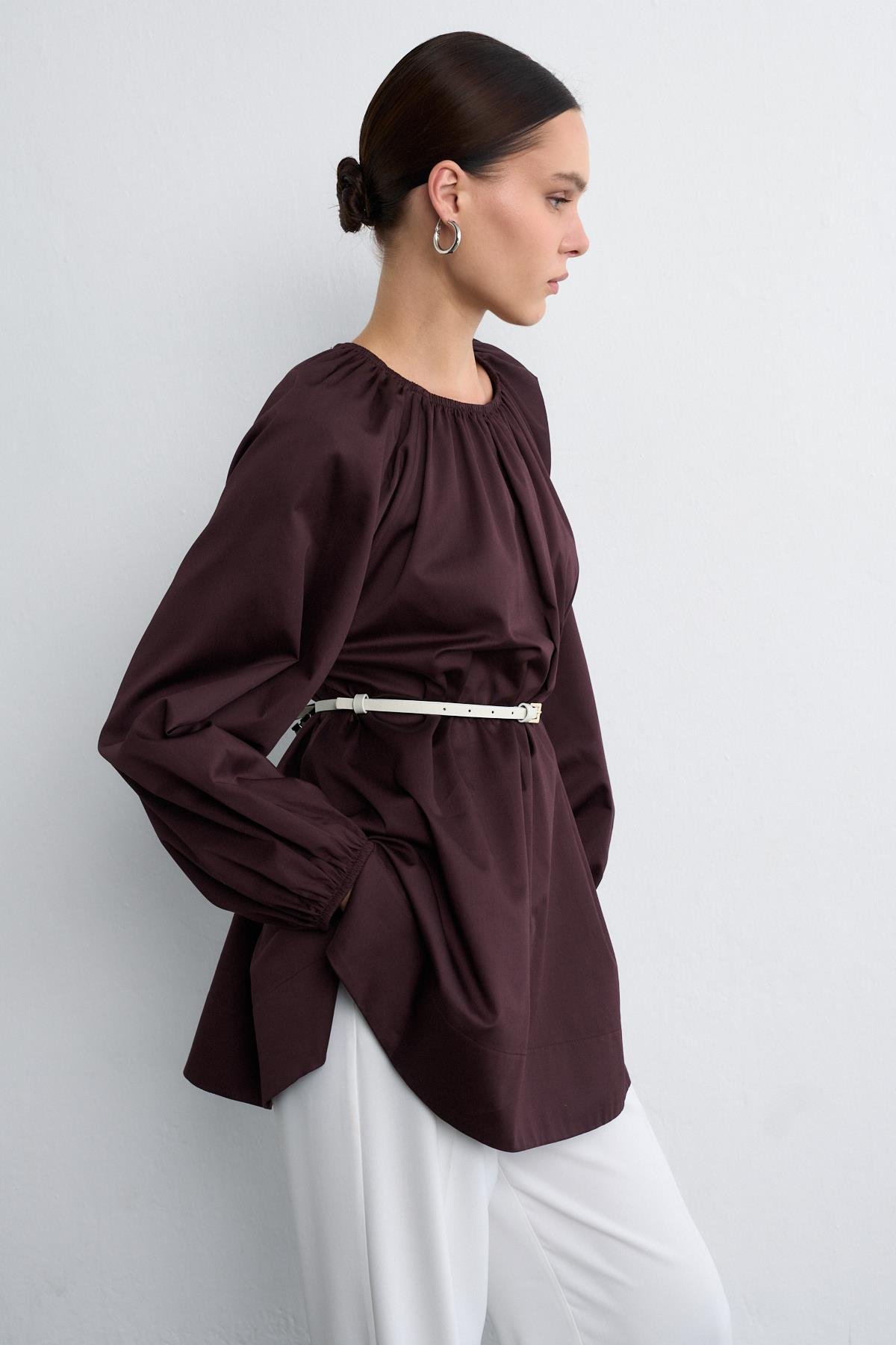 İncelikli tasarımı ve modern dokusuyla Wardrobe Heritage koleksiyonunun imza parçalarından biri… Sade renklerin asaletini yansıtan bu pamuk poplin bluz, büzgü detayları ve kusursuz siluetiyle zarafeti her an stilinize taşıyor.