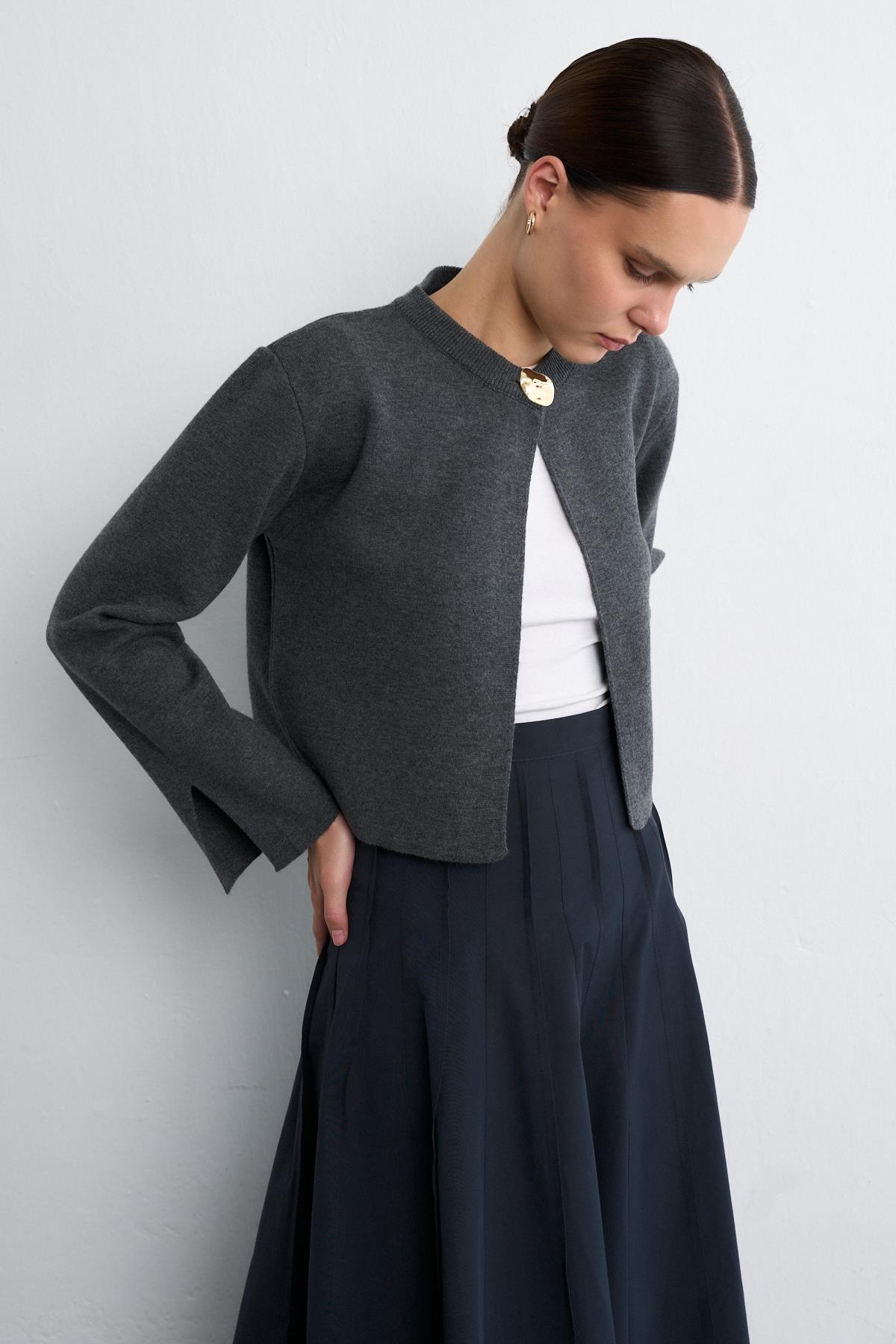 TEK DÜĞMELİ TRİKO CEKET ANTRASİT